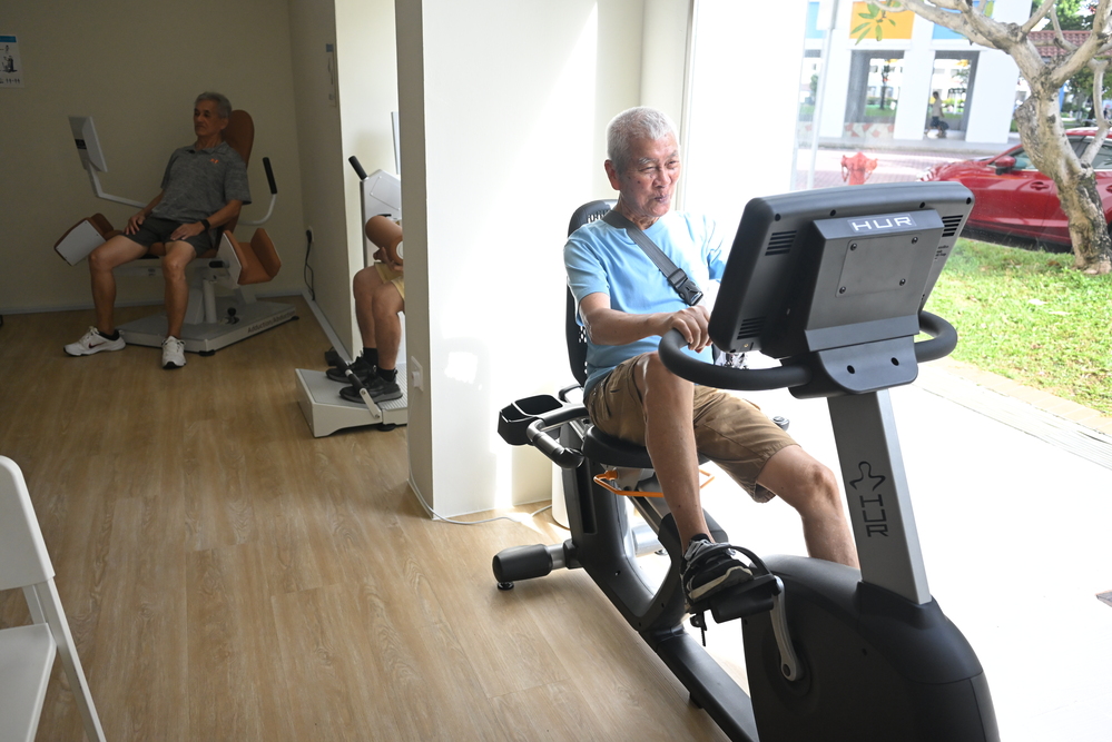 While using the HUR Solutions exercise equipment and participating in Tzu Chi activities, seniors can also accumulate points, which can be redeemed within the community for services such as meals and haircuts. (Photo by Donn Tan)